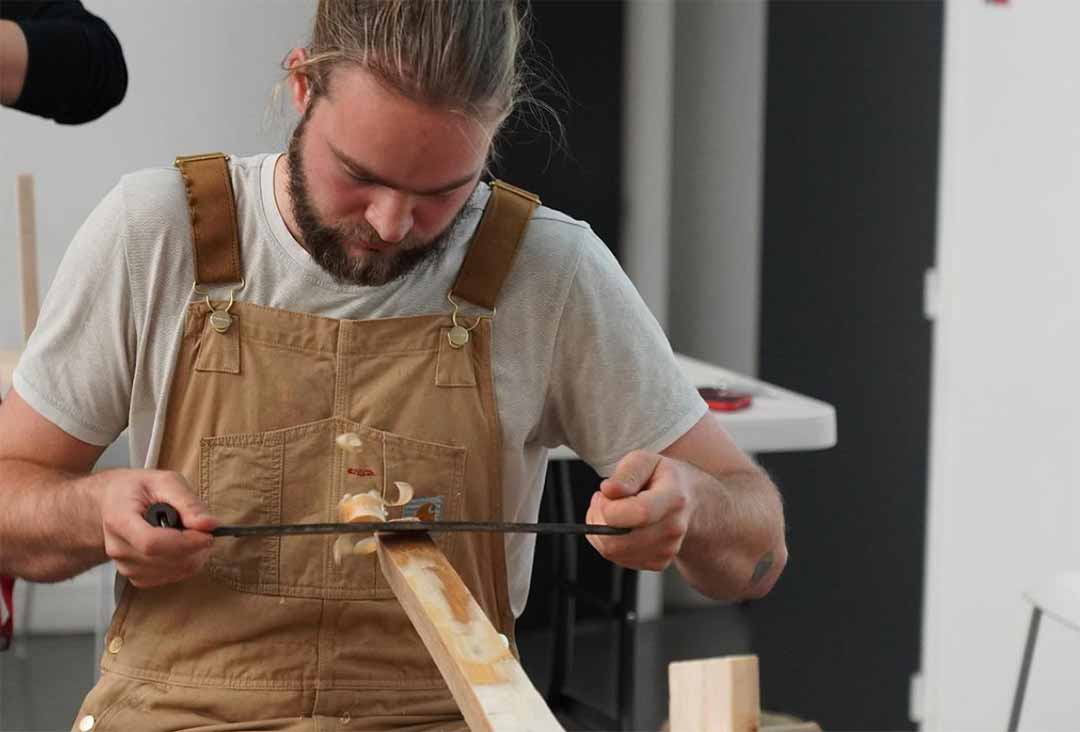 Program : Rethinking the use of wood in art and design creations. With only green wood (unseasoned wood, therefore impure for construction purposes), yet we made research on assembly with this uncommon material and found ways to deal with it and create objects, furniture, lighting fixtures and more. In partnership with École Boulle and Office National des Forêts.