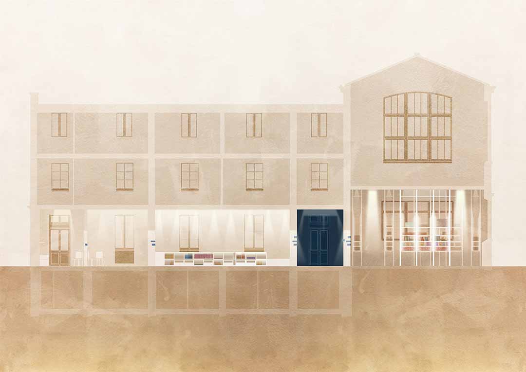 Program : Renovation of the Pavillon Chabrol, an integral part of the Gobelins complex (Paris 13, FR) into the Material library of the Campus Mode Métiers d'Art & Design. Finalist in the Jeune Création 2024 competition. Team : Josef Parent, Solène Boué, Thérèse Echeverria, Celia Banyik