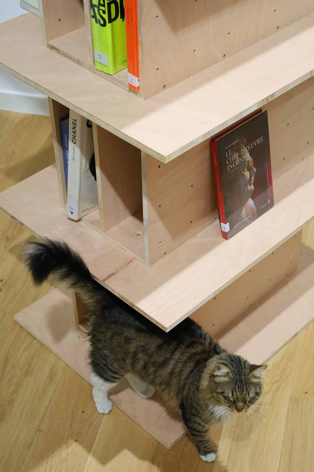 Program : Shelf created during an artistic residency in Algiers (Algeria). It is modular and can be dismantled, and is made of plywood.